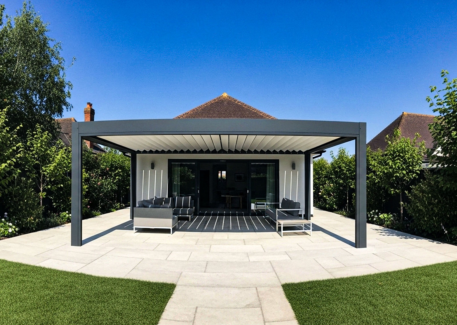 The attached pergolas make the whole indoor-outdoor flow feel natural. Great for expanding your usable space without it feeling disconnected from your main building.